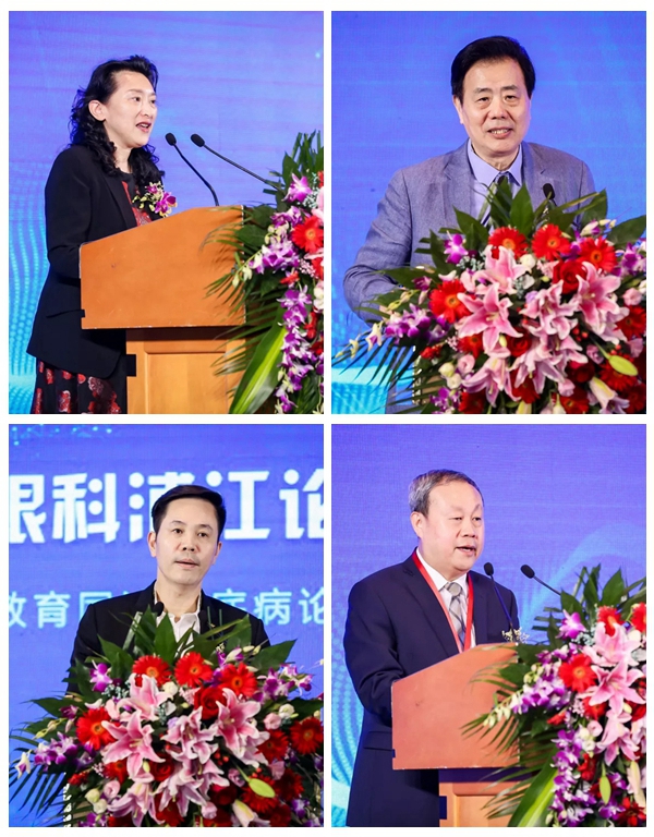 ▲ 上海市卫生健康委员会宣传处处长俞军女士;中华医学会眼科学分会主任委员、浙江大学附属第二医院眼科中心主任姚克教授;上海新视界眼科医院集团董事长林春光先生;上海市社会医疗机构协会眼科专委会主任委员、上海交通大学附属仁济医院柳林教授分别发表致辞