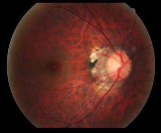 4、后葡萄肿:常见于视神经周围及后极部,多有高度近视;